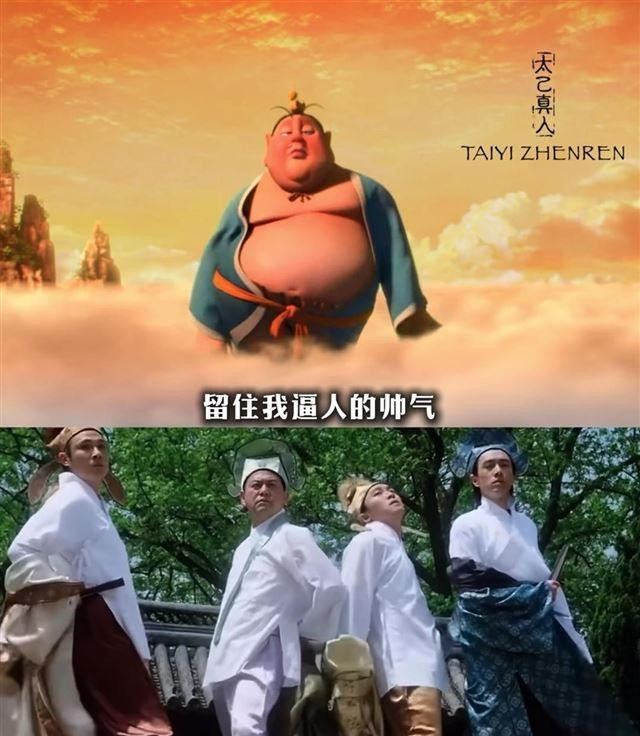 尽管只是后背的身影,头顶的丸子头、身披混天绫的造型让人仿佛看到了年轻时风趣幽默的他。